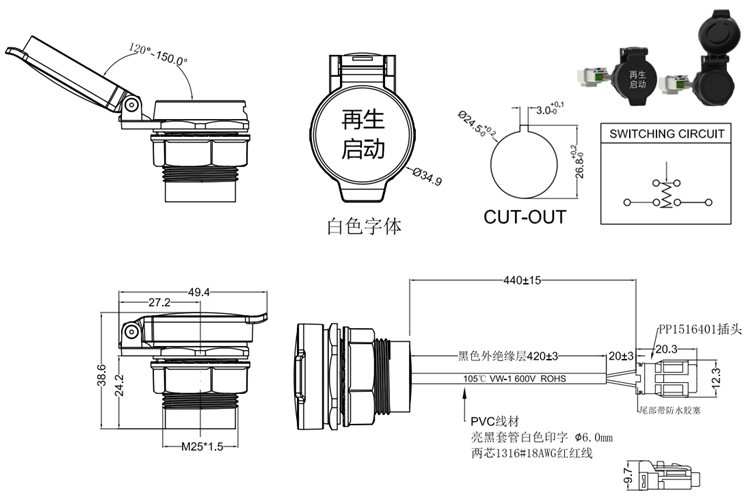 DSH係列收割機開關,通過高低溫測試;防塵防震(zhèn)動,TUV:IP68防水等級;根據要求印製